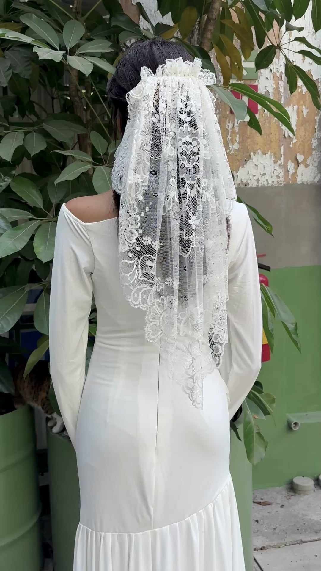 The delicate nature of our veils requires gentle handling. Unfold and hang, steam lightly if needed.Keep away from direct sunlight. Avoid excessive friction to preserve its softness and flowy drape. Do not machine wash or soak in water. Spot clean using a damp cloth. Do not bleach. Unembellished veils may be hand-washed and air-dried flat. Embellished veils could be professional dry-cleaded if needed by a specialized provider using absolutely no liquids in their process.