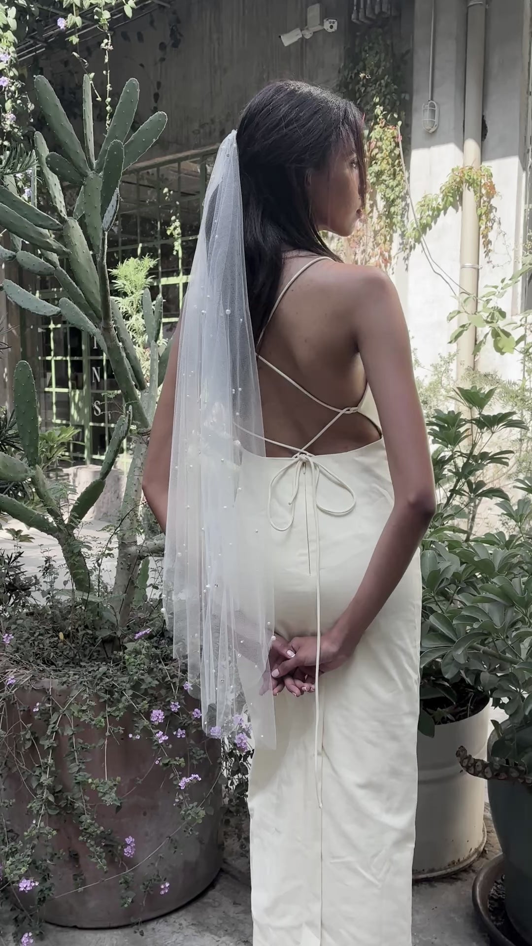The delicate nature of our veils requires gentle handling. Unfold and hang, steam lightly if needed.Keep away from direct sunlight. Avoid excessive friction to preserve its softness and flowy drape. Do not machine wash or soak in water. Spot clean using a damp cloth. Do not bleach. Unembellished veils may be hand-washed and air-dried flat. Embellished veils could be professional dry-cleaded if needed by a specialized provider using absolutely no liquids in their process.