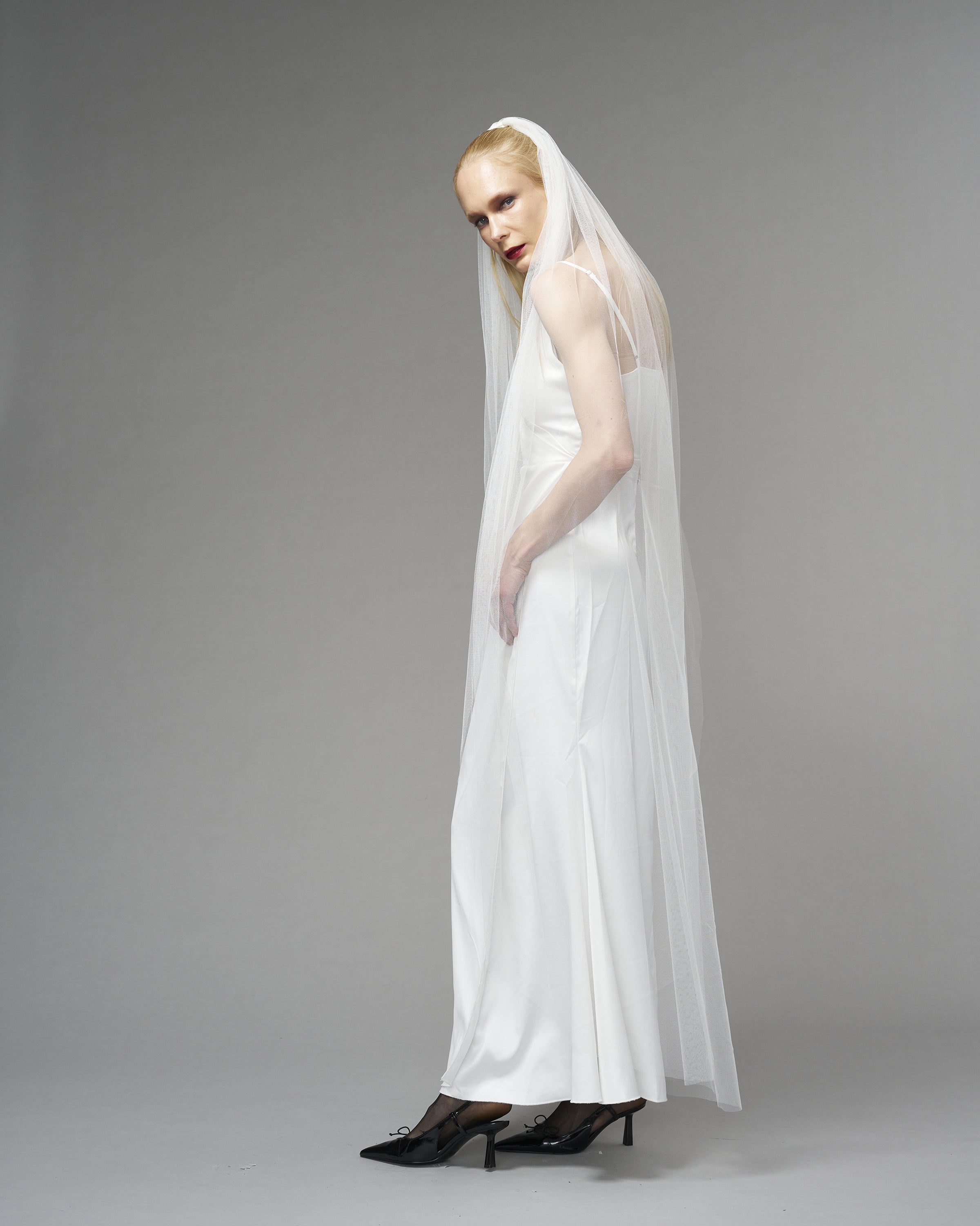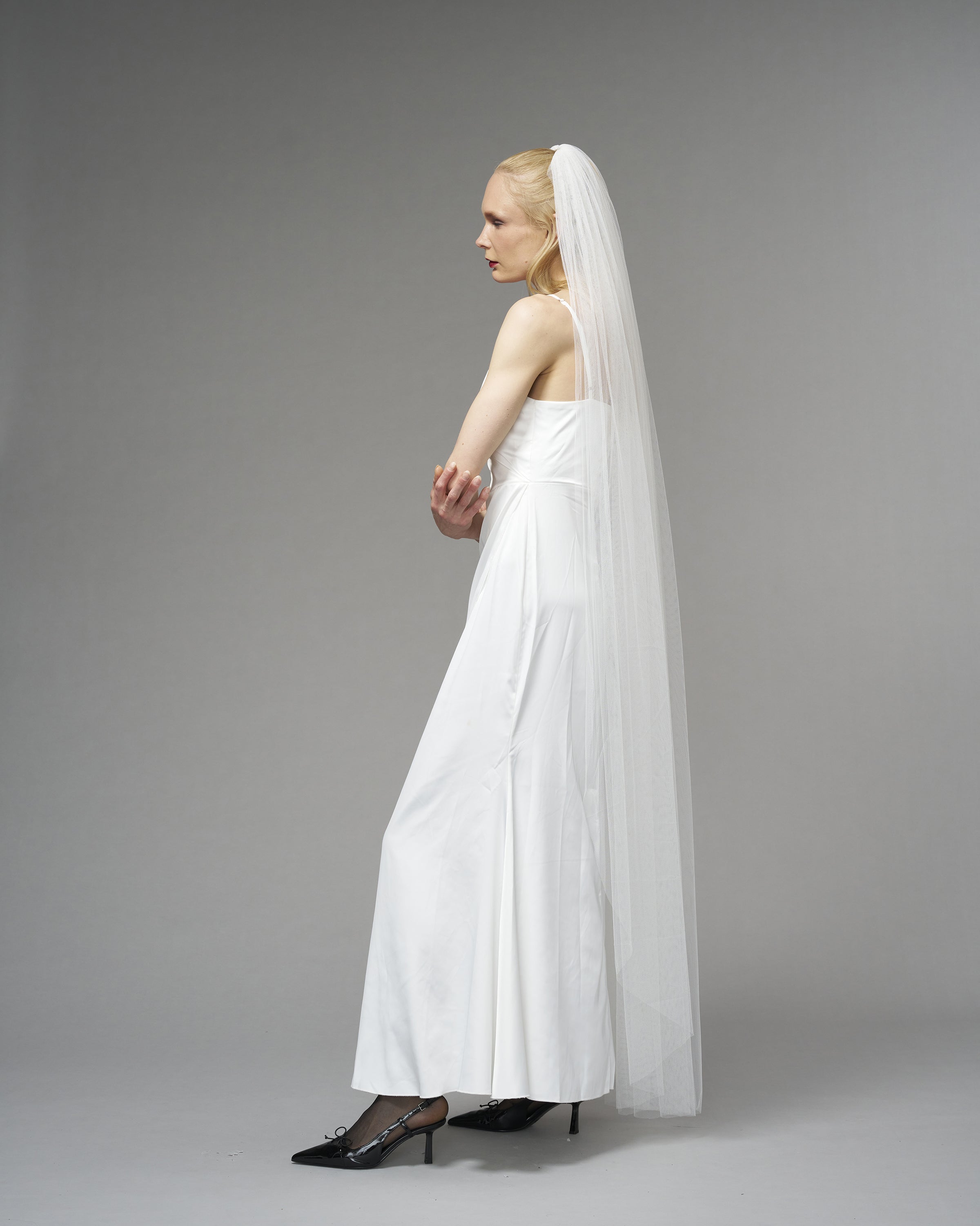 A veil in its purest form. For the modern, conscious bride who seeks simplicity with a touch of elegance.