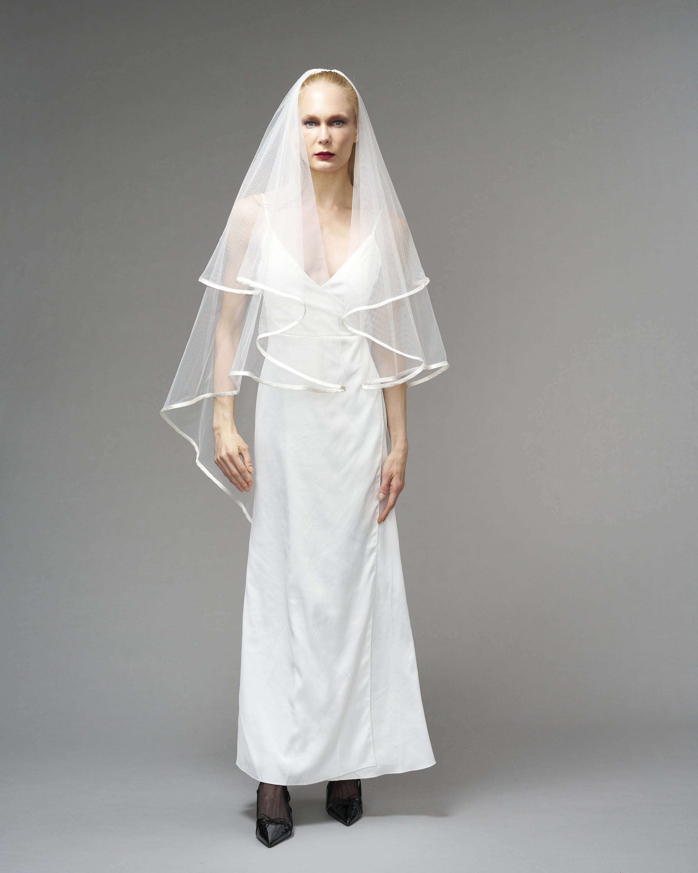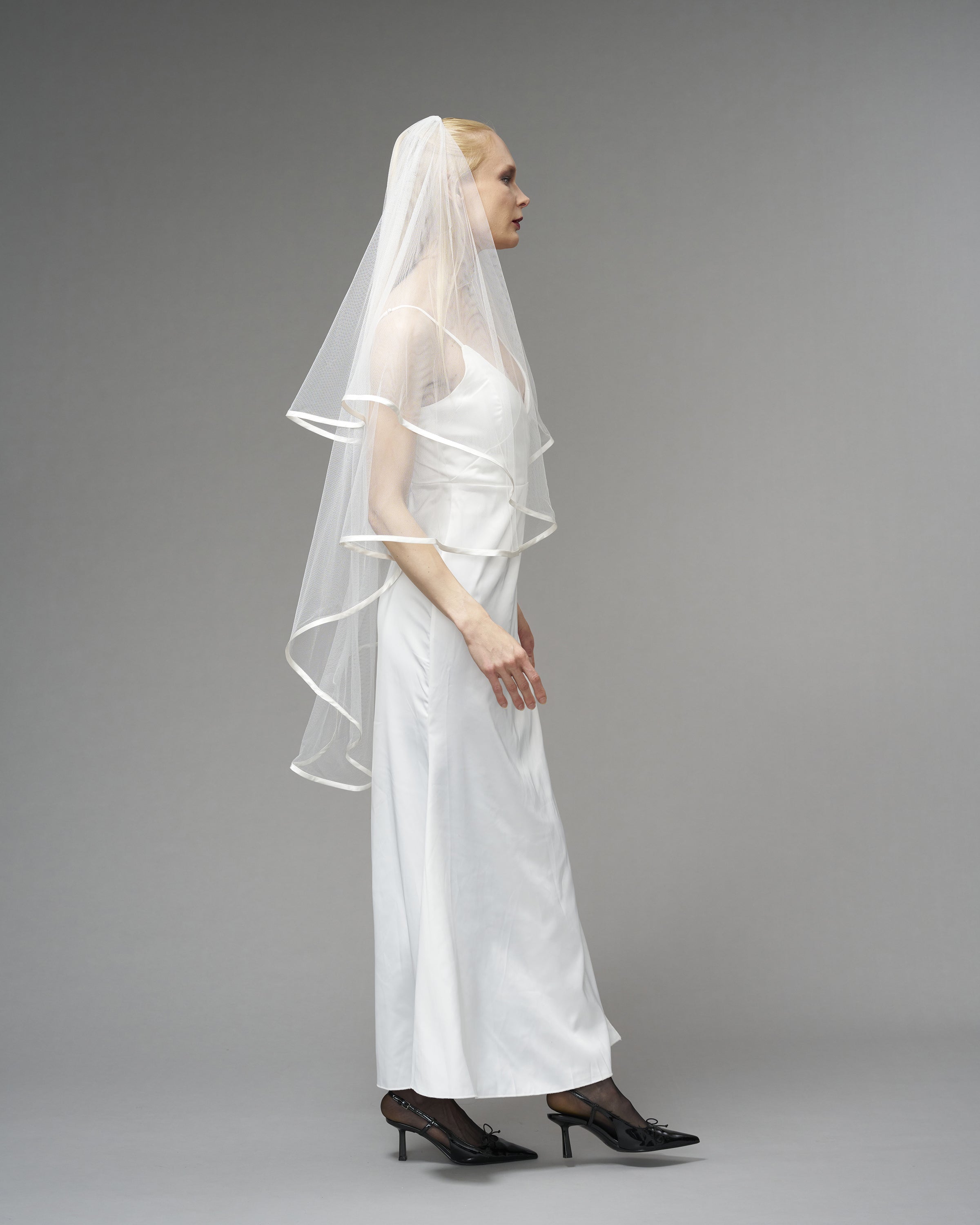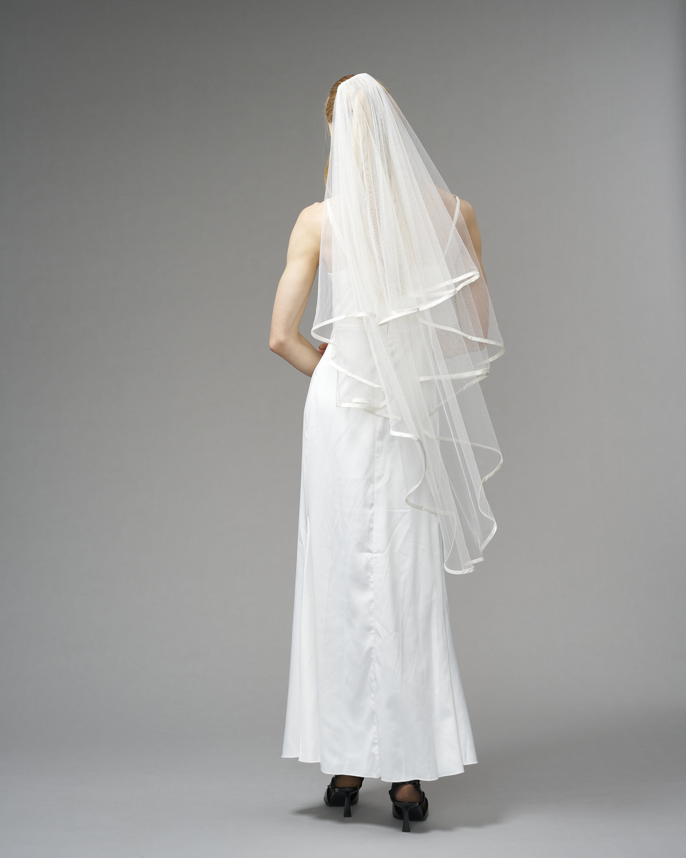 Finished with a delicate 9mm satin trim. A touch of definition while keeping an understated elegance—perfect for the modern bride seeking a polished yet effortless look.