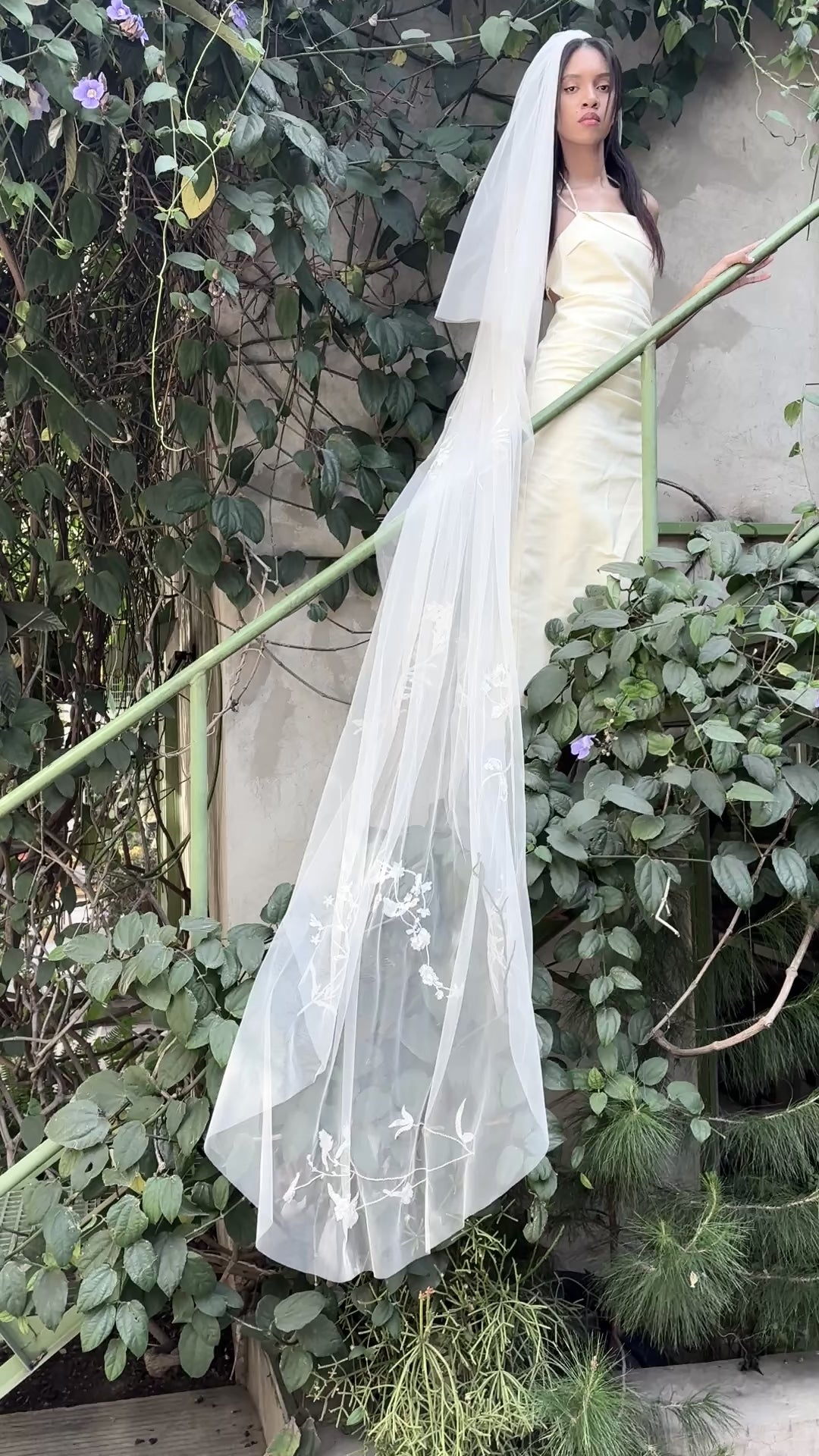 The delicate nature of our veils requires gentle handling. Unfold and hang, steam lightly if needed.Keep away from direct sunlight. Avoid excessive friction to preserve its softness and flowy drape. Do not machine wash or soak in water. Spot clean using a damp cloth. Do not bleach. Unembellished veils may be hand-washed and air-dried flat. Embellished veils could be professional dry-cleaded if needed by a specialized provider using absolutely no liquids in their process.