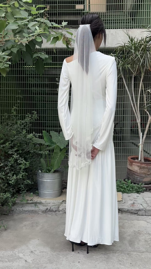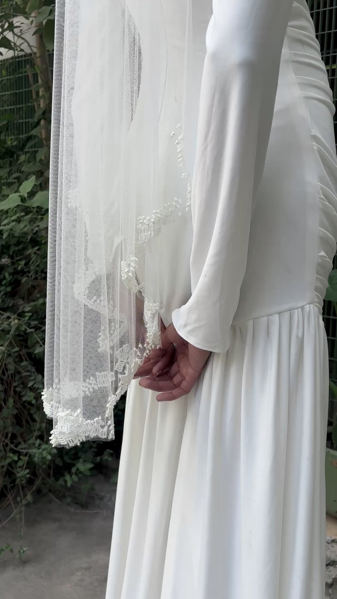 The delicate nature of our veils requires gentle handling. Unfold and hang, steam lightly if needed.Keep away from direct sunlight. Avoid excessive friction to preserve its softness and flowy drape. Do not machine wash or soak in water. Spot clean using a damp cloth. Do not bleach. Unembellished veils may be hand-washed and air-dried flat. Embellished veils could be professional dry-cleaded if needed by a specialized provider using absolutely no liquids in their process.