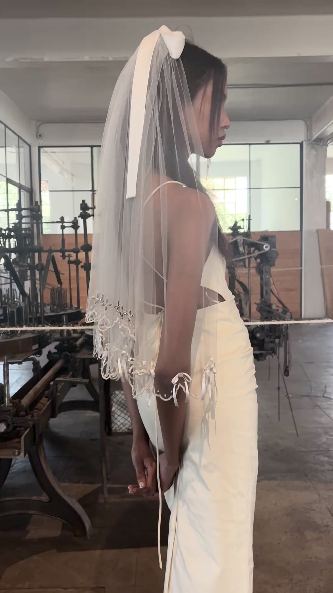 The delicate nature of our veils requires gentle handling. Unfold and hang, steam lightly if needed.Keep away from direct sunlight. Avoid excessive friction to preserve its softness and flowy drape. Do not machine wash or soak in water. Spot clean using a damp cloth. Do not bleach. Unembellished veils may be hand-washed and air-dried flat. Embellished veils could be professional dry-cleaded if needed by a specialized provider using absolutely no liquids in their process.