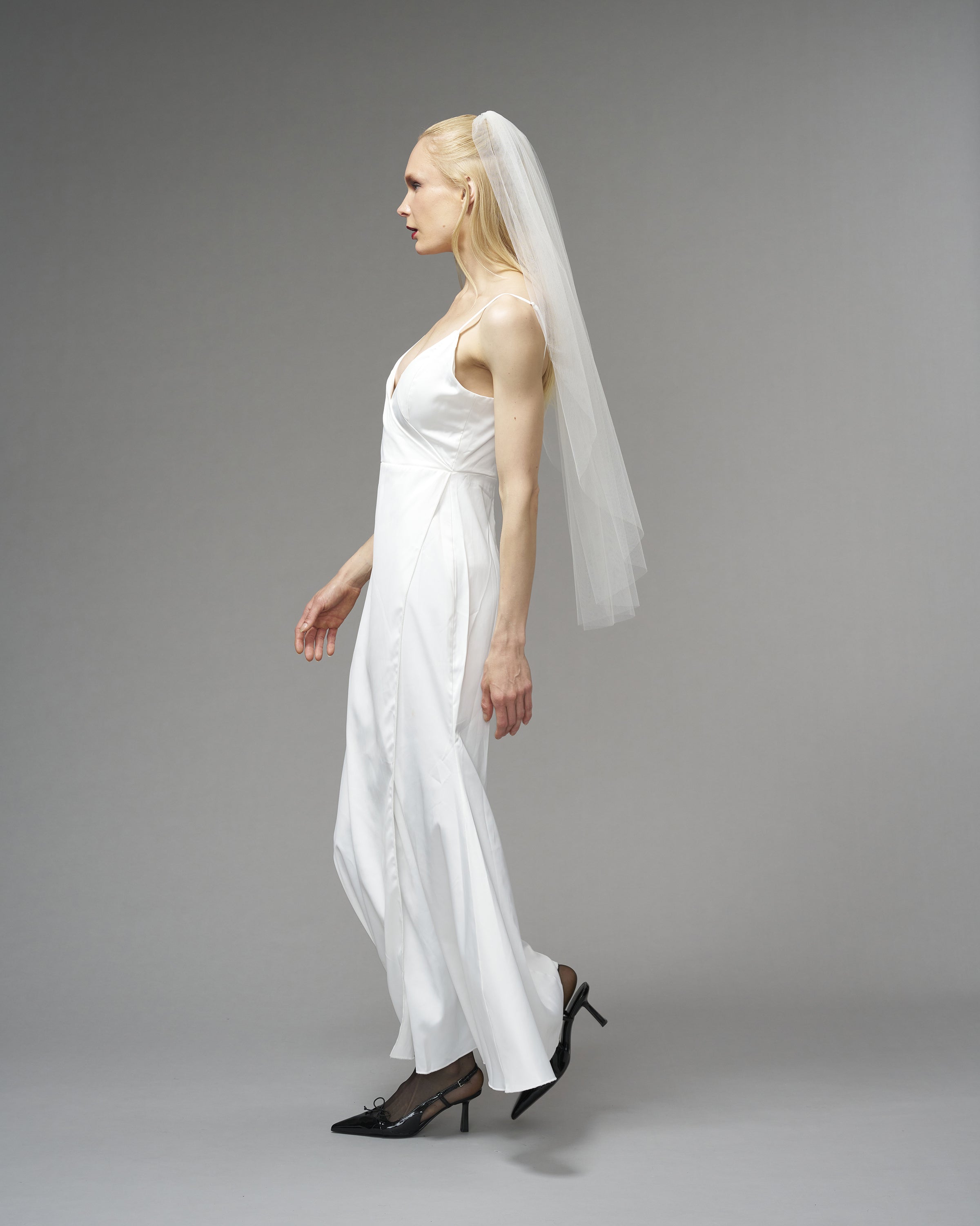 A veil in its purest form. For the modern, conscious bride who seeks simplicity with a touch of elegance.