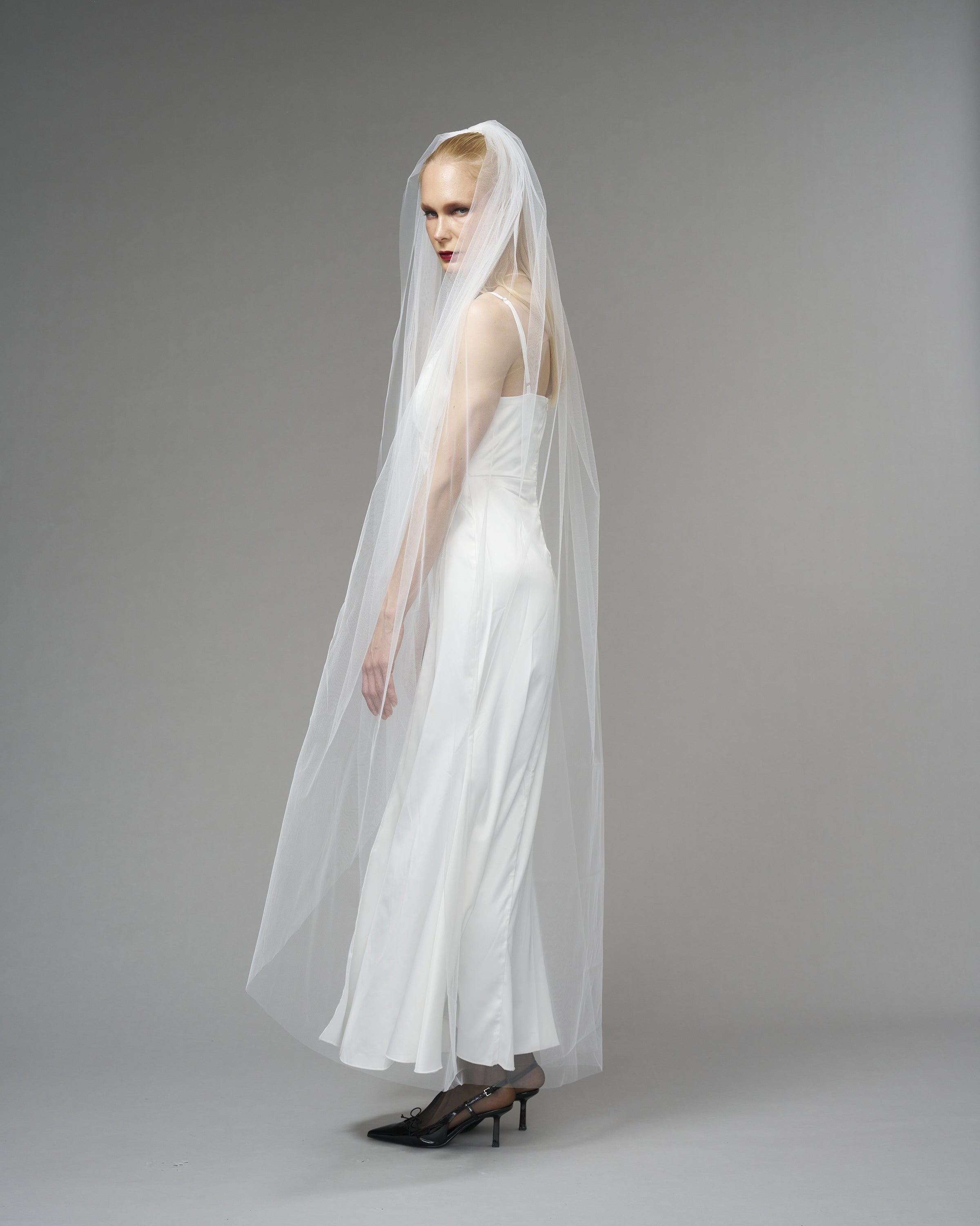 A veil in its purest form. For the modern, conscious bride who seeks simplicity with a touch of elegance.