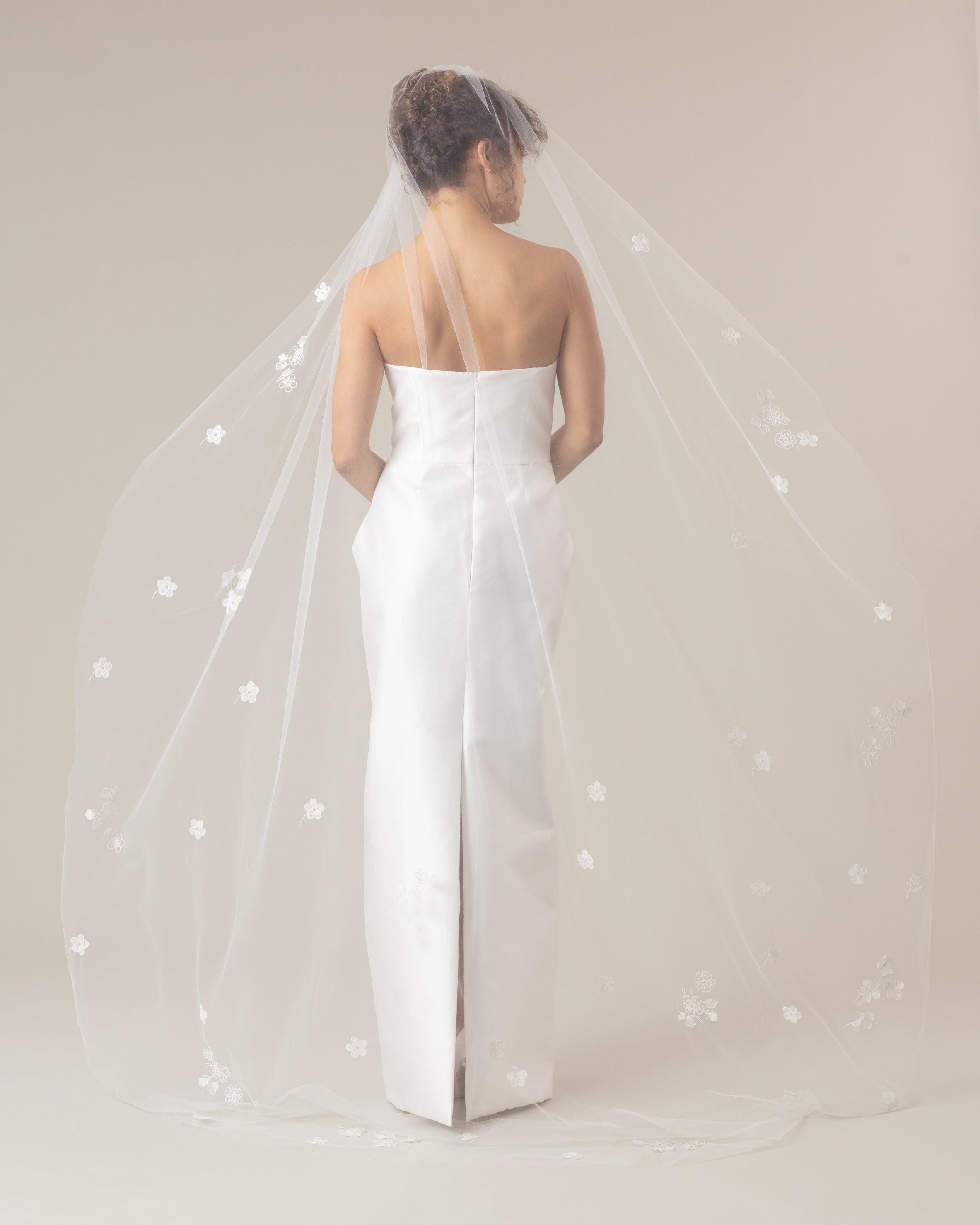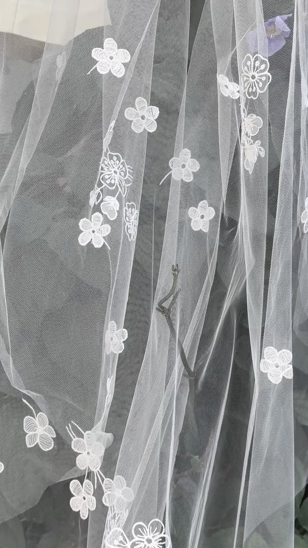 Delicate blossoms scattered in a beautiful soft tulle veil.