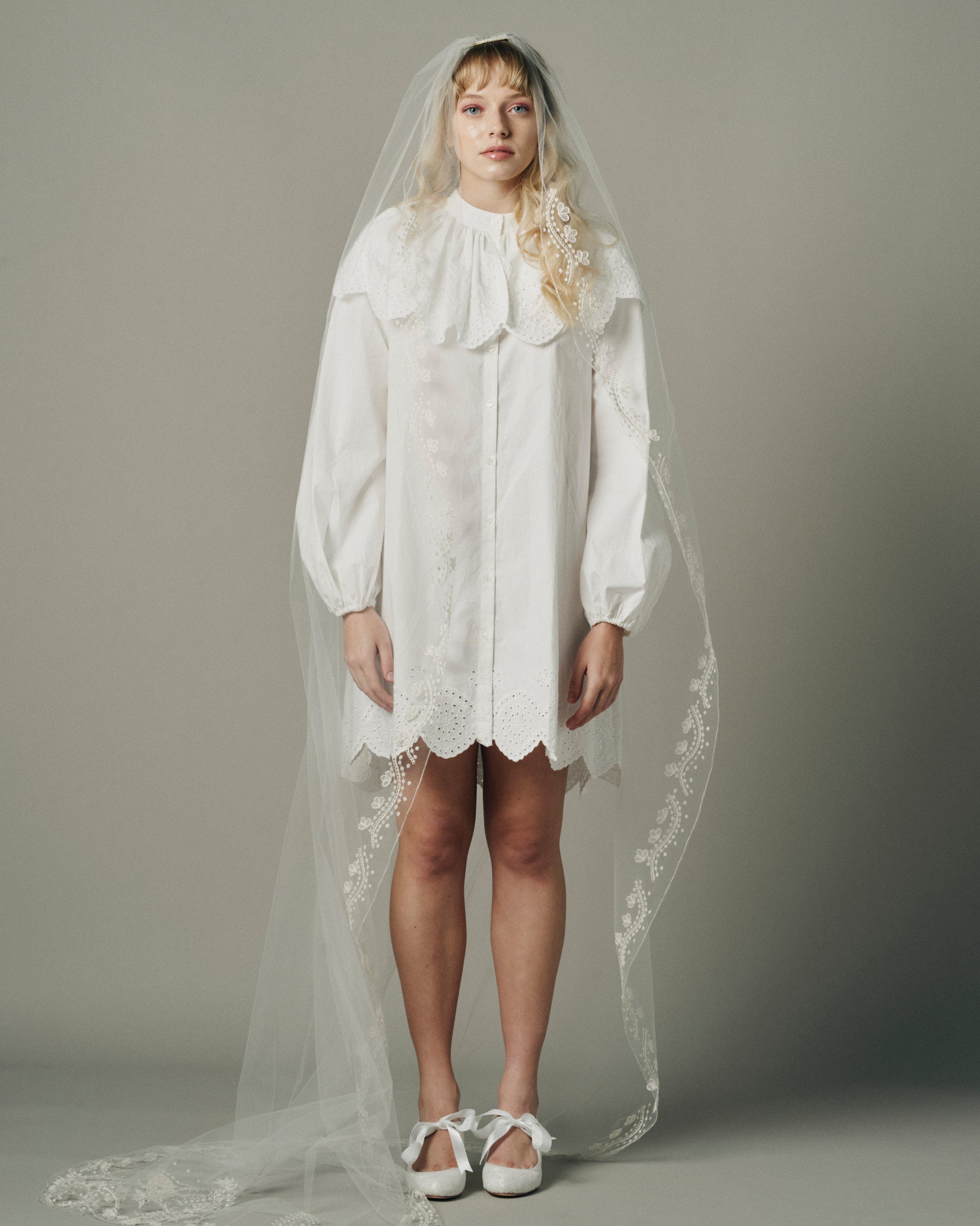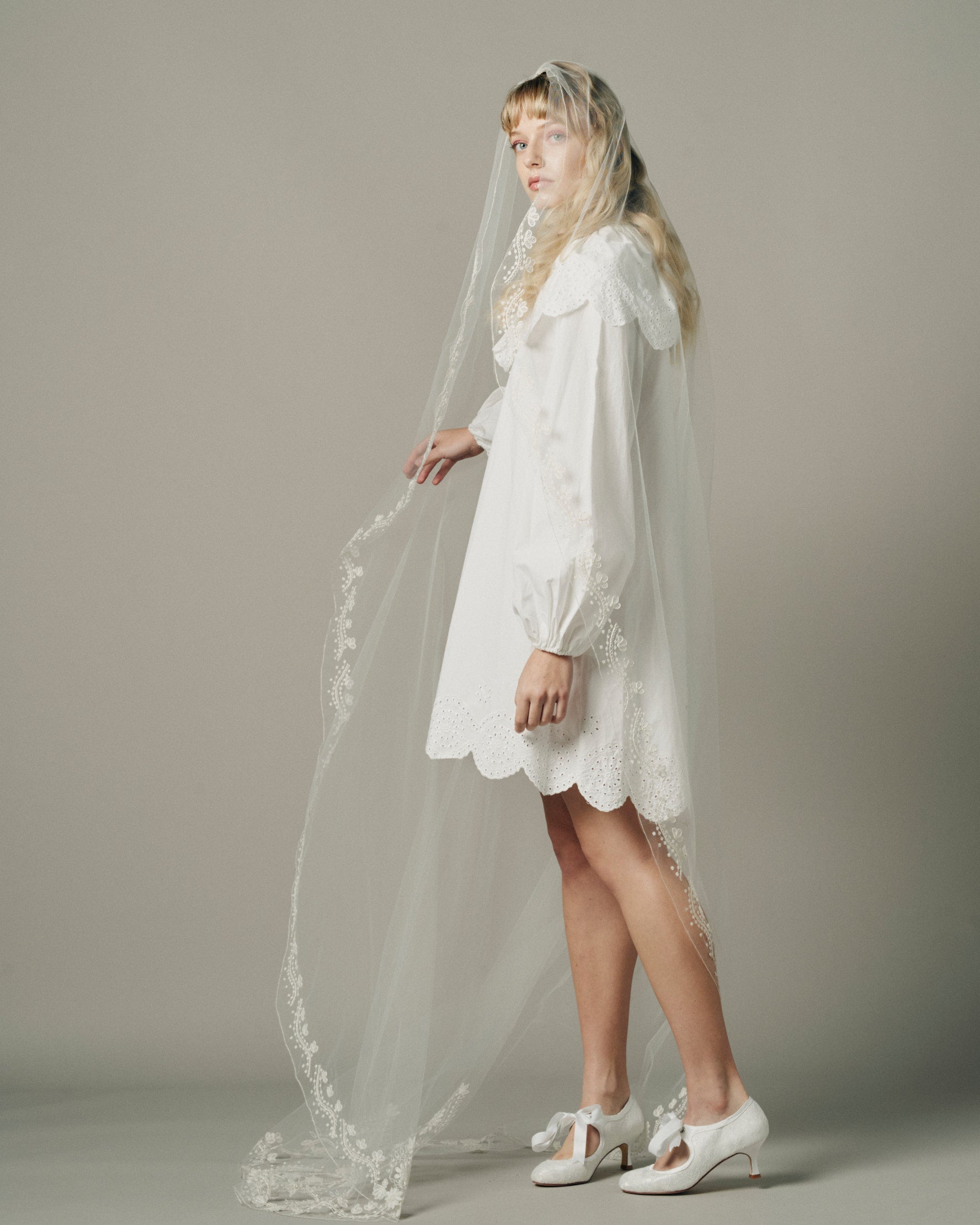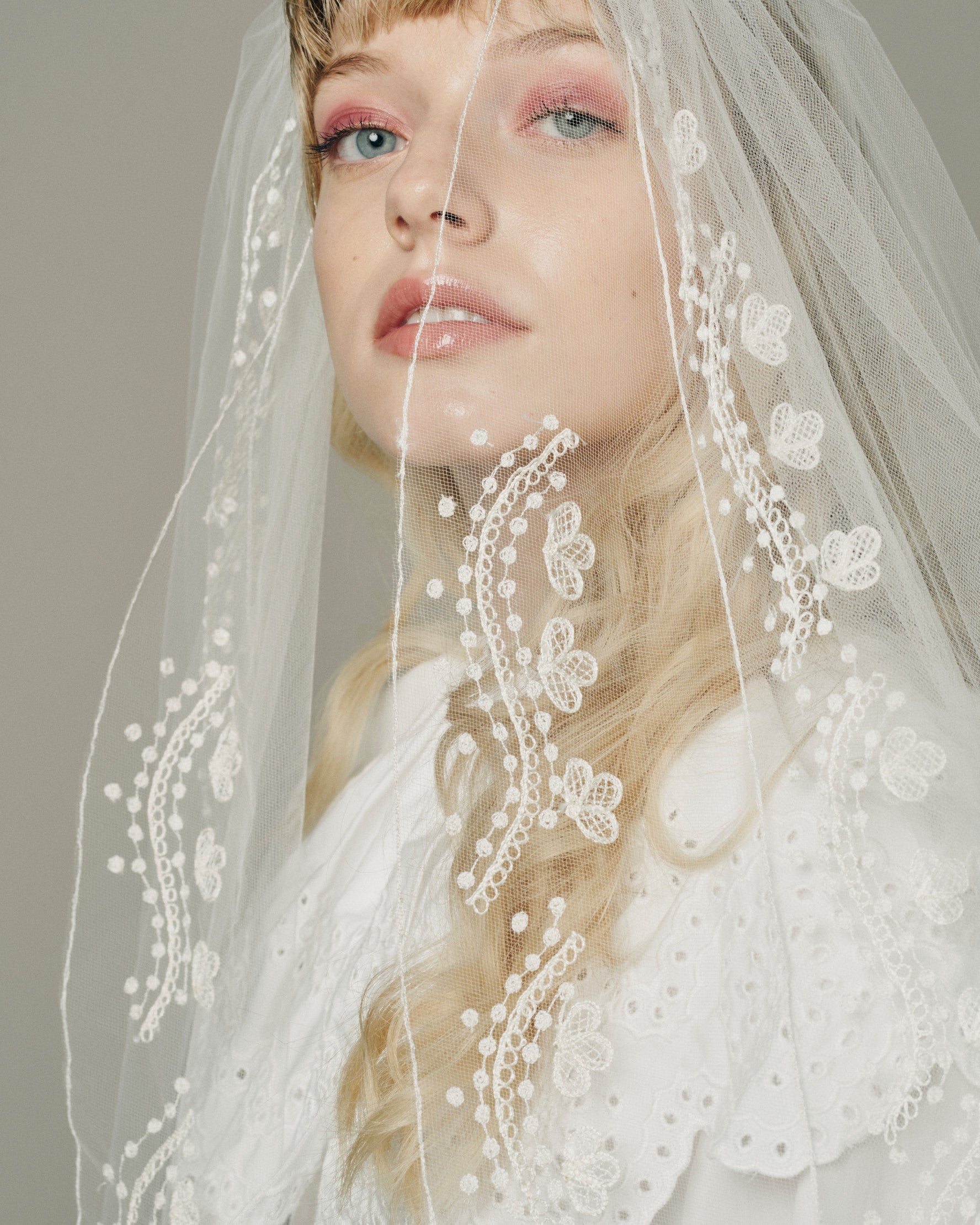 The delicate nature of our veils requires gentle handling. Unfold and hang, steam lightly if needed.Keep away from direct sunlight. Avoid excessive friction to preserve its softness and flowy drape. Do not machine wash or soak in water. Spot clean using a damp cloth. Do not bleach. Unembellished veils may be hand-washed and air-dried flat. Embellished veils could be professional dry-cleaded if needed by a specialized provider using absolutely no liquids in their process.