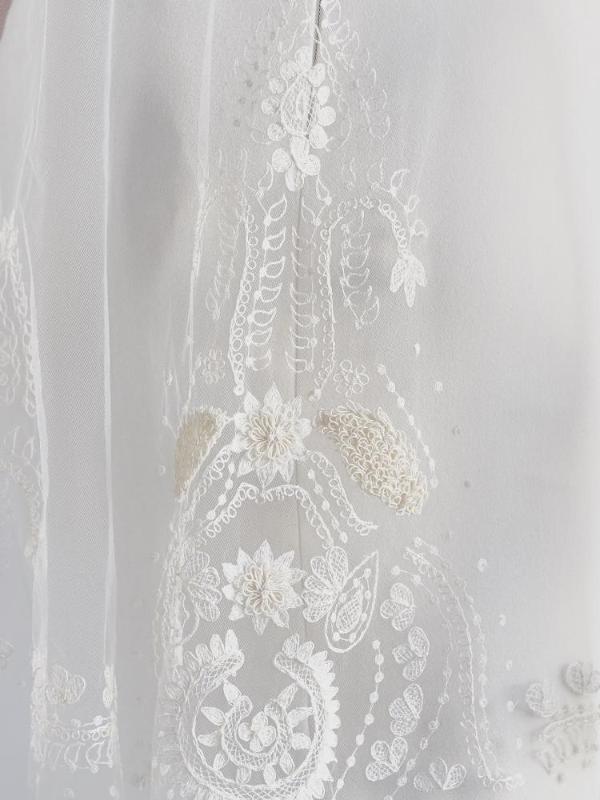 A breathtaking veil with embroidered bohemian motifs inspired by Chikankari embroidery. The ornate, figure-framing trim of the Oracle Veil will leave you floating down between the natural and the spiritual realms.