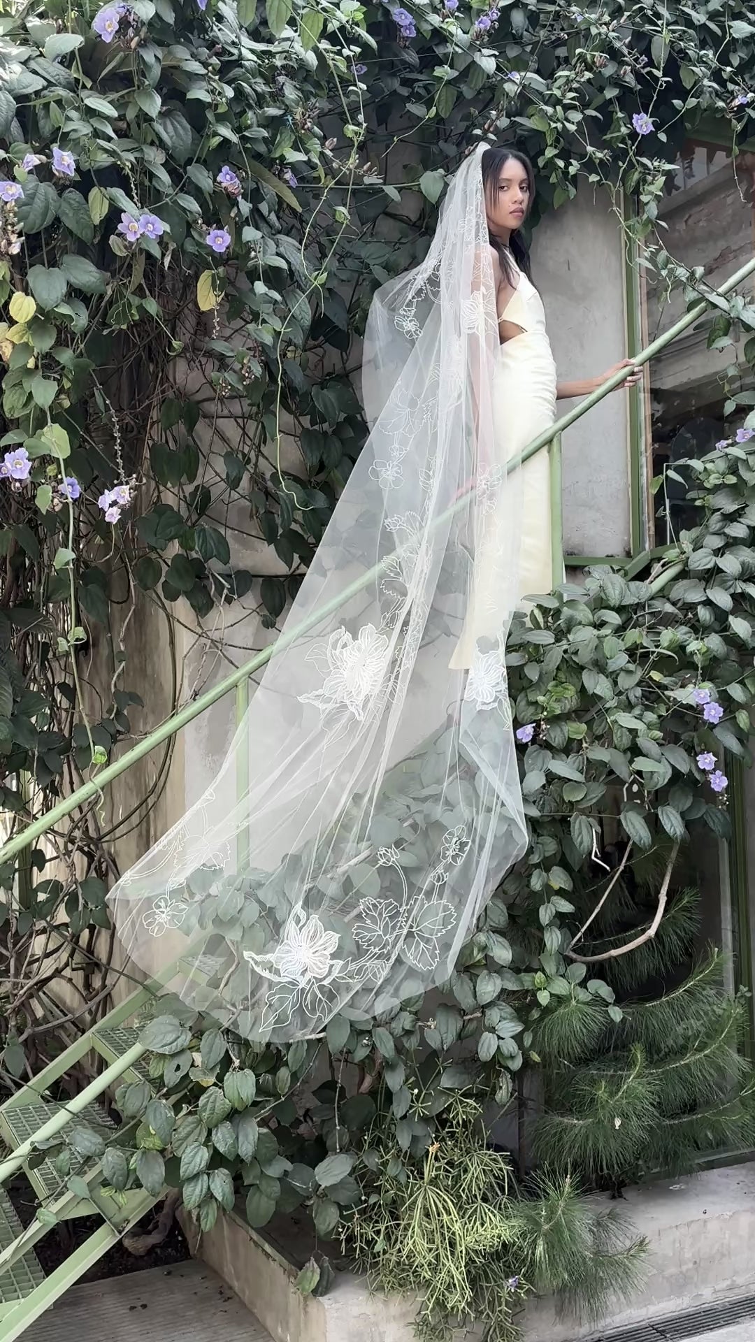 The delicate nature of our veils requires gentle handling. Unfold and hang, steam lightly if needed.Keep away from direct sunlight. Avoid excessive friction to preserve its softness and flowy drape. Do not machine wash or soak in water. Spot clean using a damp cloth. Do not bleach. Unembellished veils may be hand-washed and air-dried flat. Embellished veils could be professional dry-cleaded if needed by a specialized provider using absolutely no liquids in their process.