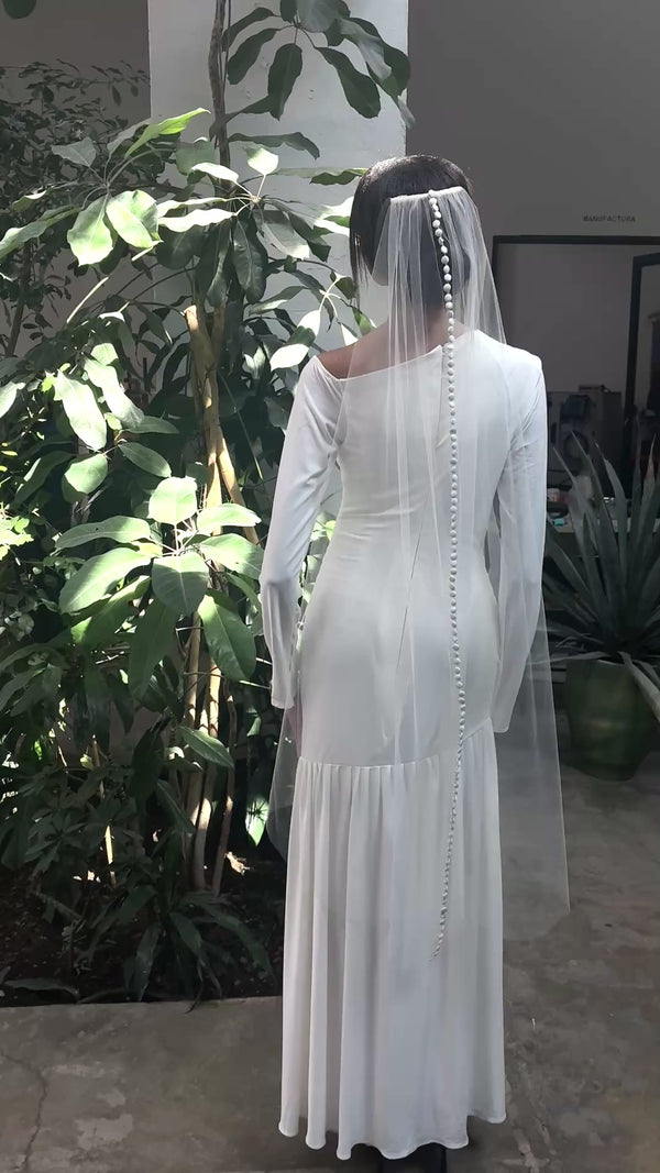 The delicate nature of our veils requires gentle handling. Unfold and hang, steam lightly if needed.Keep away from direct sunlight. Avoid excessive friction to preserve its softness and flowy drape. Do not machine wash or soak in water. Spot clean using a damp cloth. Do not bleach. Unembellished veils may be hand-washed and air-dried flat. Embellished veils could be professional dry-cleaded if needed by a specialized provider using absolutely no liquids in their process.