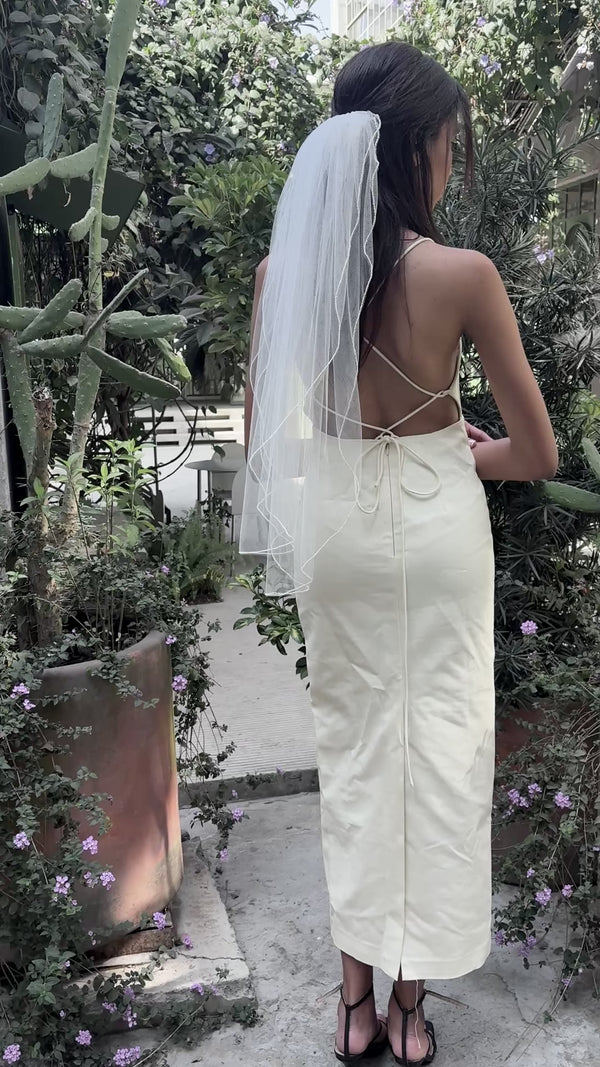 The delicate nature of our veils requires gentle handling. Unfold and hang, steam lightly if needed.Keep away from direct sunlight. Avoid excessive friction to preserve its softness and flowy drape. Do not machine wash or soak in water. Spot clean using a damp cloth. Do not bleach. Unembellished veils may be hand-washed and air-dried flat. Embellished veils could be professional dry-cleaded if needed by a specialized provider using absolutely no liquids in their process.